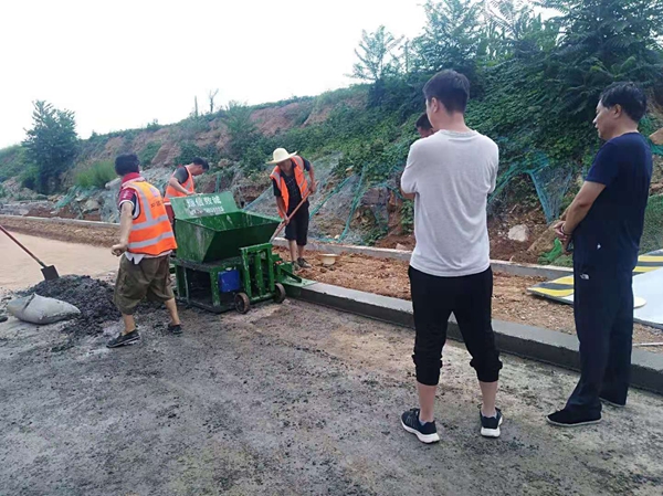 早期公路攔水帶是由混凝土預制成型的條形塊拼接而成,例如30cm高*15cm寬*100cm長。但是施工速度慢,需要大量人工?,F采用現澆一次成型攔水帶機施工。直接將攪拌好的混凝土放入機器中,通過螺旋擠壓成型,高度最高可達35CM。